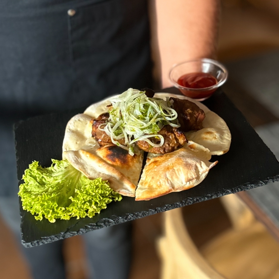 свино-яловича, салат "айзберг", томати,сир "Чедер", цибуля, соус сирний, соус бургер. Вихід: 340 г.