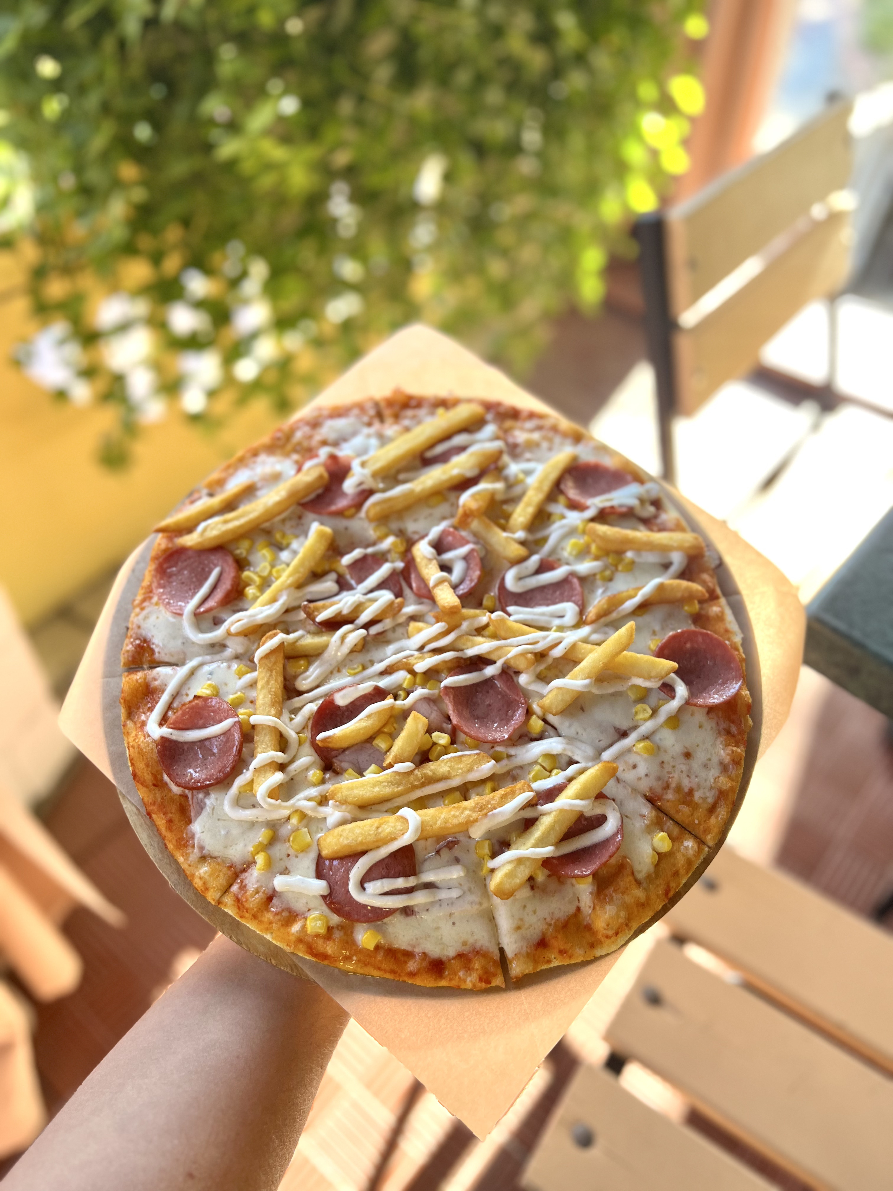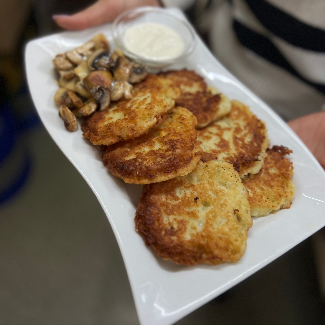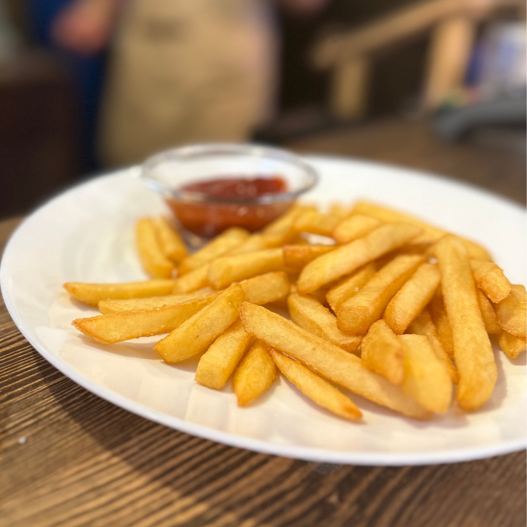 огірок консервований, салат айзберг, сир "Чедер", соус гірчичний, кетчуп, картопля фрі. Вихід: 200/70/40 г.